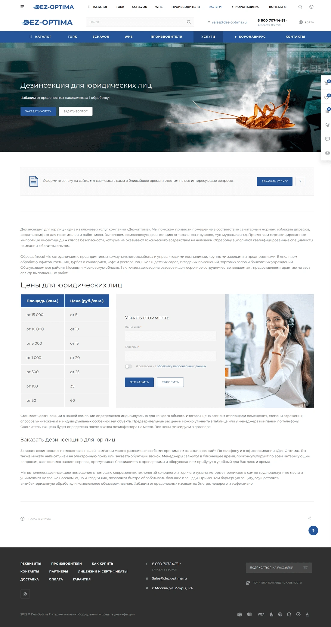 Компания Дез-Оптима занимается продажей оборудования и средств дезинфекции, предлагает широкий ассортимент гигиенической продукции, профессиональной химии и прочих товаров для торговых центров, гостиниц, производств и предприятий пищевой промышленности.