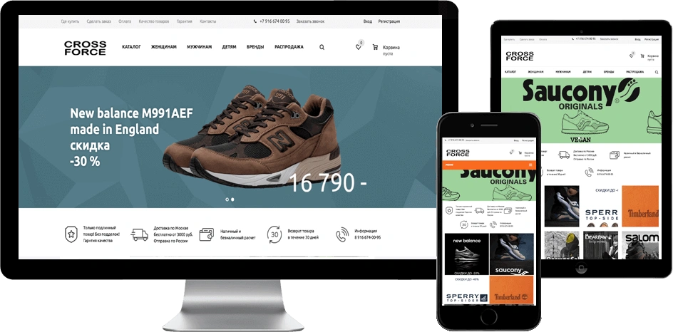 Интернет-магазин обуви. Перед нами стояла задача, быстрого запуска магазина, на готовом решении. Проект разработан на шаблоне Аспро. Мы уложились в 14 дней, по мимо разработки сайта, выполнили, следующие задачи: Real-time двухсторонний обмен с «1С», подключение эквайринга и онлайн кассы, внутренняя оптимизация, настройка контекстной рекламы,